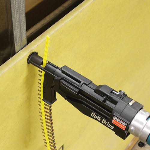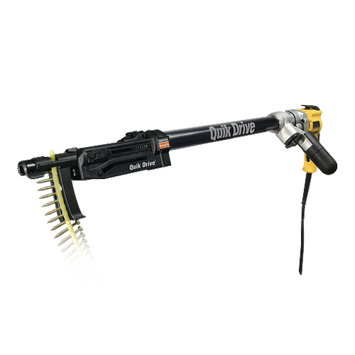 Fastening has never been as fast or as cost-effective. Collated-screw fastening tools are replacing traditional nail guns for their speed, reliability and power. Quik Drive auto-feed screw driving systems are easy to use, durable and designed for a wide variety of fastening applications. Featuring quick-loading screw strips, precise countersink adjustment and a patented auto-advance mechanism, Quik Drive tools save time and expense on jobsites every day.