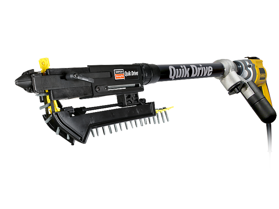 The Quik Drive® BSD200G2 Structural Steel-Decking Attachment and the Quik Drive PROSDX150 Steel-Decking system are the only tools you need to fasten steel decking. The Quik Drive® BSD200G2 Structural Steel-Decking Attachment is the perfect choice for fastening wide-valley nestable steel deck to structural steel members where the maximum load values of the Strong-Drive® XL Large-Head Metal screw are required. The PROSDX150 is the multipurpose system for nestable or interlocking steel decking and side-lap stitching. The PROSDX150 can be loaded with the Strong-Drive XM Medium-Head Metal screw for interlocking steel deck applications, or one of the Strong-Drive Self-Drilling X Metal screws for side-lap stitching or coldformed steel framing.